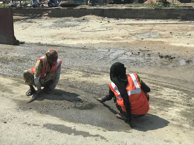 Yesterday, we saw two ladies sweeping the roads with a broom made of bamboo reeds - moving gravel from one pothole to another. They would do this all day every day.